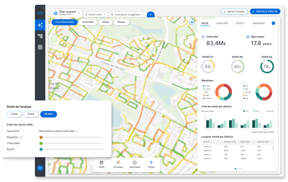 Conçue pour les organisations qui ne peuvent pas se permettre d’attendre d’avoir du recul, la plateforme vous offre un contrôle complet pour simuler des milliers d’actifs, tester des scénarios d’investissement et repérer les opportunités à fort impact avant qu’elles ne deviennent des crises.